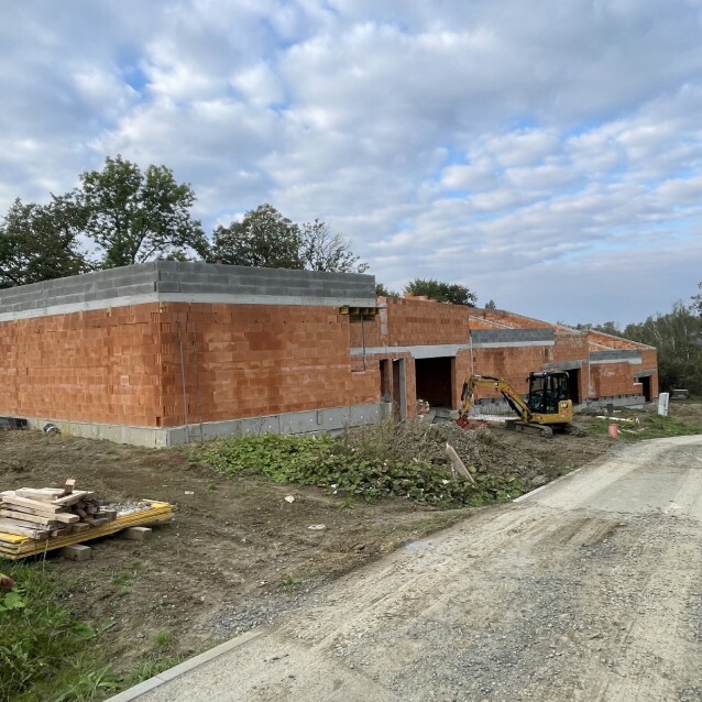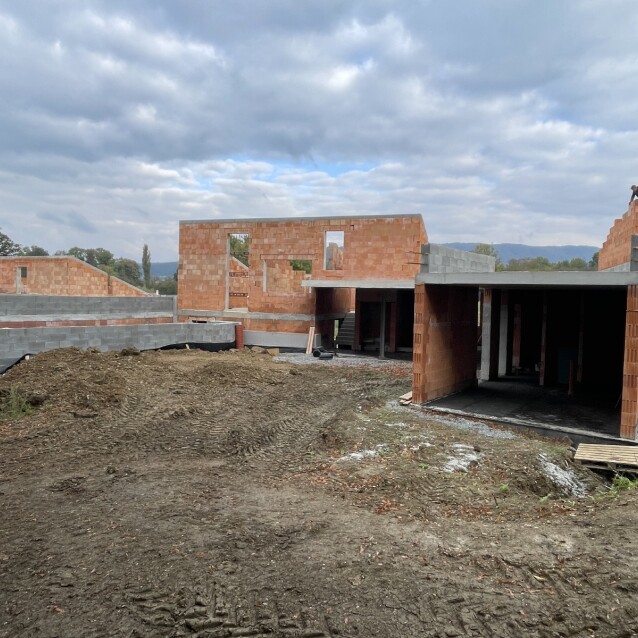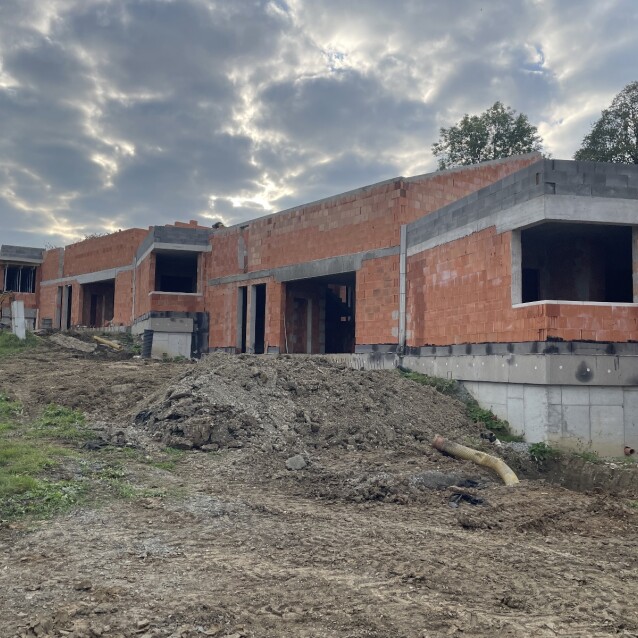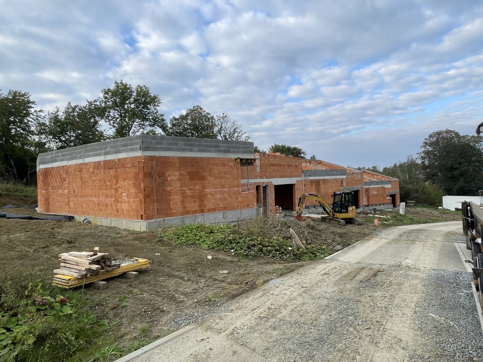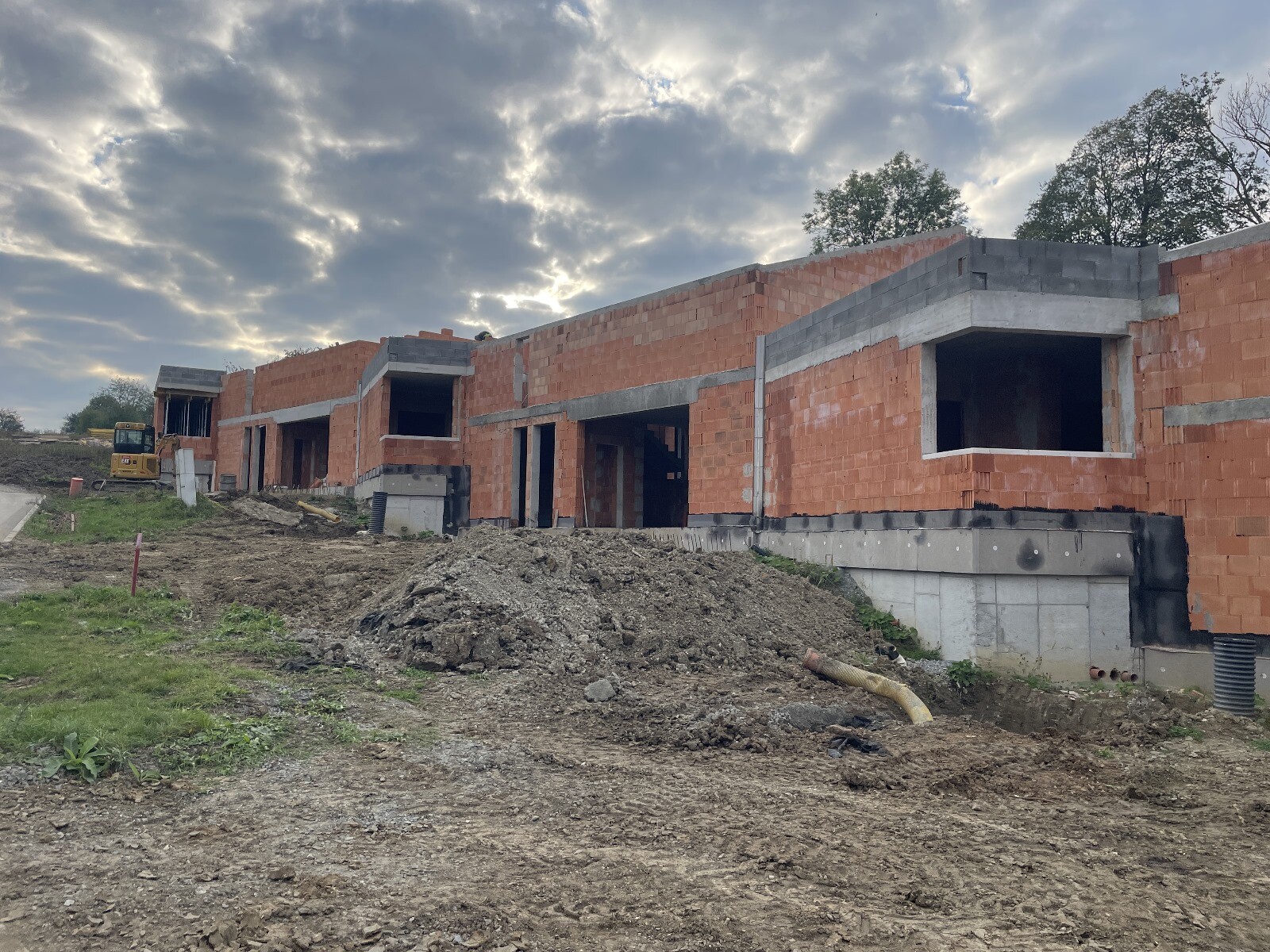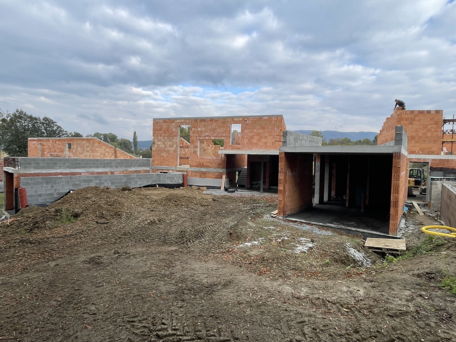 Výstavba rodinných vilek pokračuje podle stanoveného harmonogramu a na staveništi je vidět výrazný posun směrem k uzavření hrubých staveb.