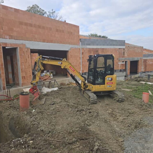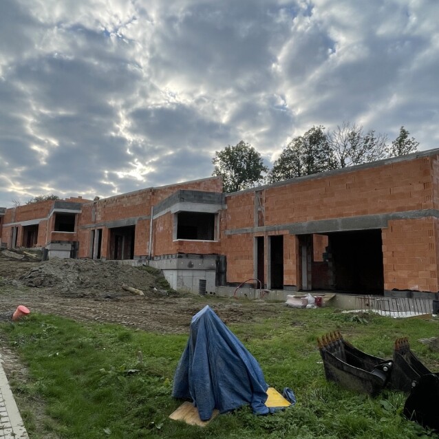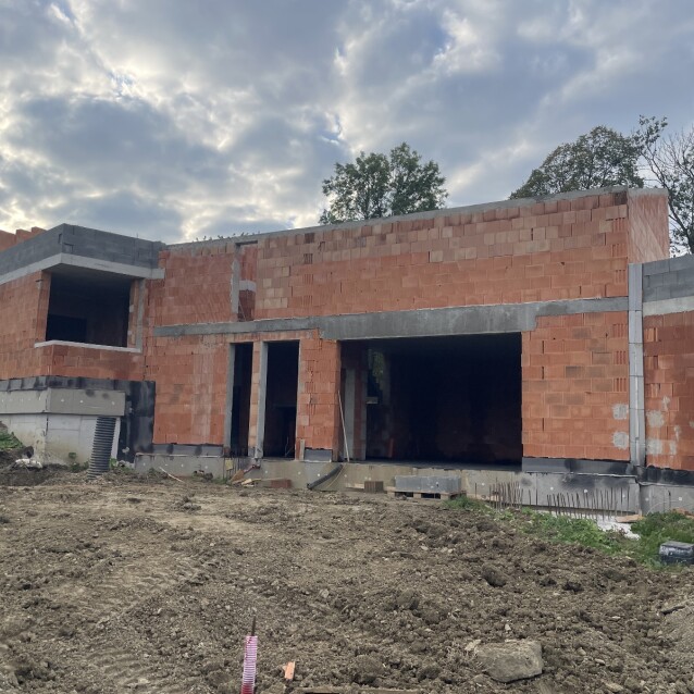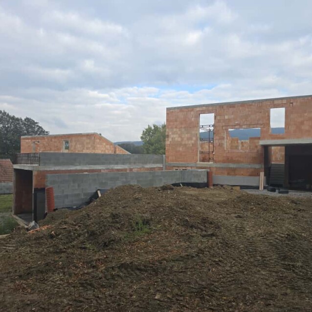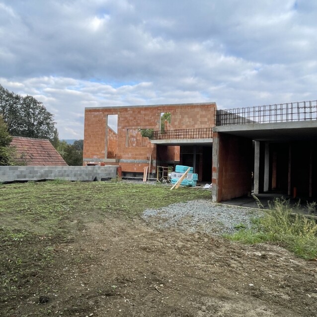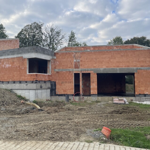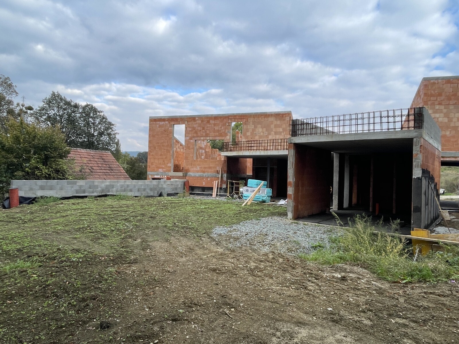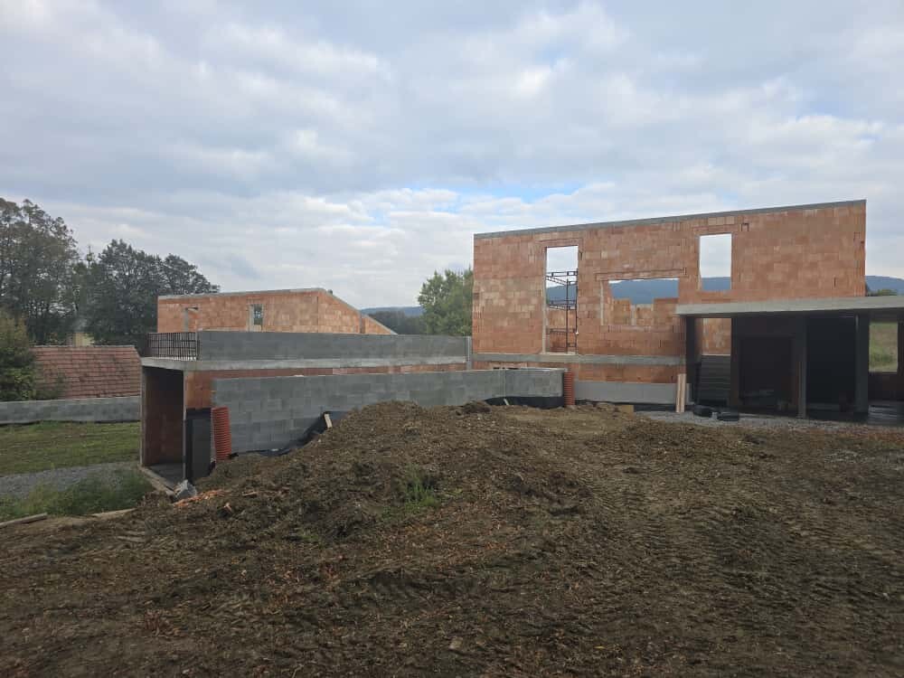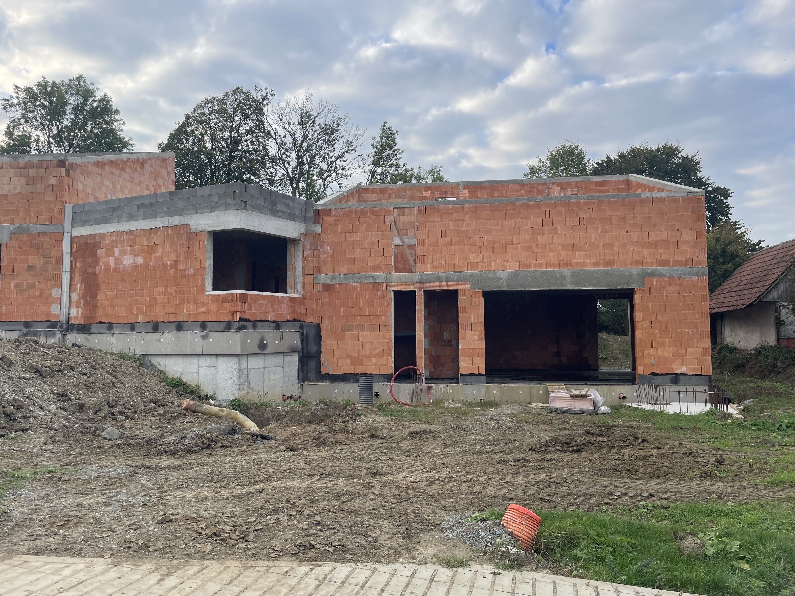 Výstavba rodinných vilek pokračuje podle stanoveného harmonogramu a na staveništi je vidět výrazný posun směrem k uzavření hrubých staveb.
