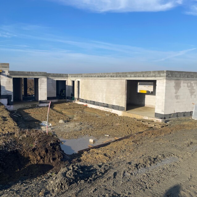 Po dokončení základových konstrukcí začaly na stavbě postupně vyrůstat první části hrubé stavby. Realizace nosných konstrukcí a obvodového zdiva tak posouvá projekt do další viditelné fáze výstavby.