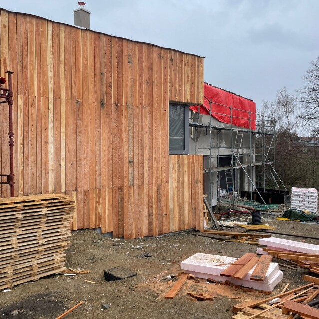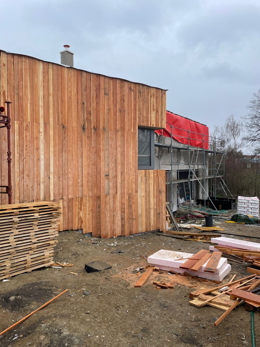 Výraznou změnou prochází také exteriér. Na první dokončované vilce se již realizuje dřevěný fasádní obklad, který je jedním z charakteristických architektonických prvků celého projektu. Právě kombinace moderních linií, přírodních materiálů a klidného prostředí dává vilkám jejich nadčasový charakter.