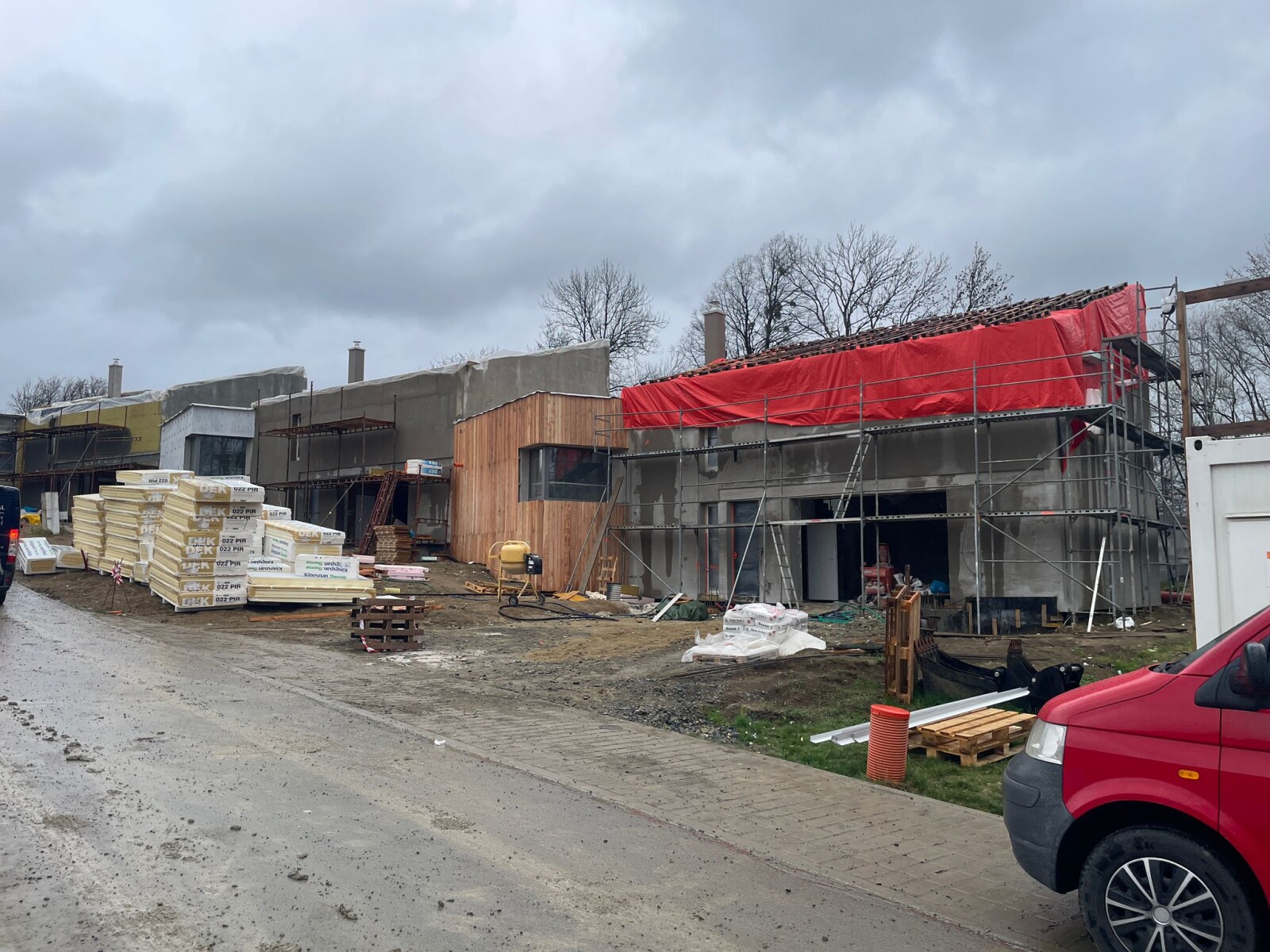 I když aktuálně stavební práce částečně komplikuje omezená dostupnost polystyrenu na trhu, realizační tým intenzivně pracuje na tom, aby byl zachován plánovaný harmonogram. Cílem zůstává dokončení všech rodinných vilek do 30. června.